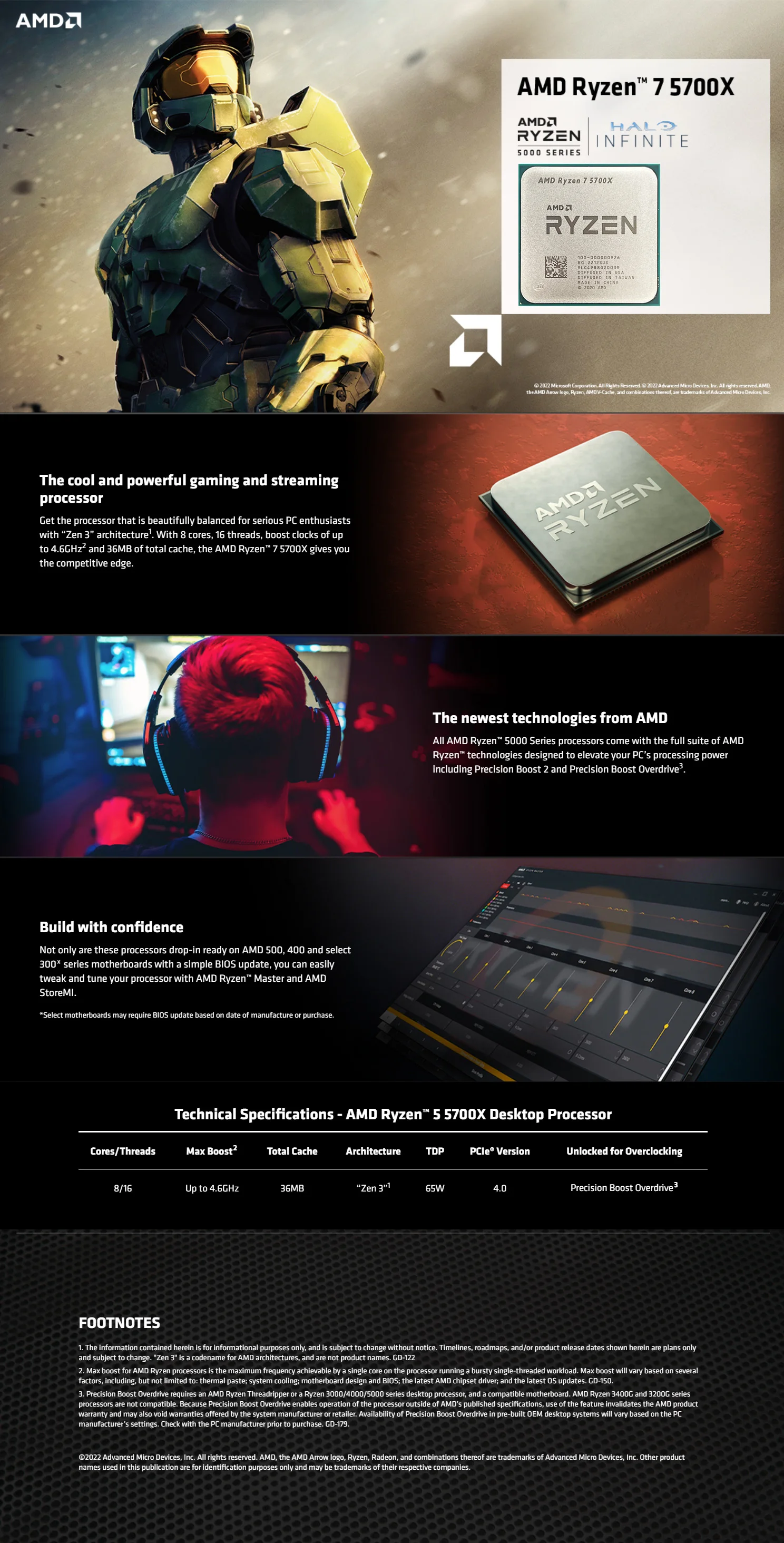 AMD R7 5700X Ryzen 7 5700X New 3.4 GHz Eight-Core 16-Thread CPU 7NM L3=32M 100-000000926 Socket AM4