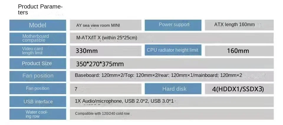Be the first to review “AY Pillarless Sea View Room MINI Computer Chassis Desktop m-atx All-side Transparent diy Shell itx White” Cancel reply