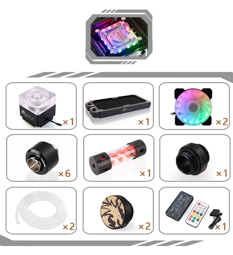 Be the first to review “Bykski Soft Tube Water Cooling Kits with CPU Block + 240mm Copper Radiator + DDC Pump+180mm Reservoir only use for CPU RGB Light” Cancel reply
