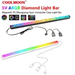 COOLMOON ARGB LED Strip Light 5V 3Pin/Small 4Pin Diamond Magnetic Colorful Atmosphere Bar Magnetic Computer Light