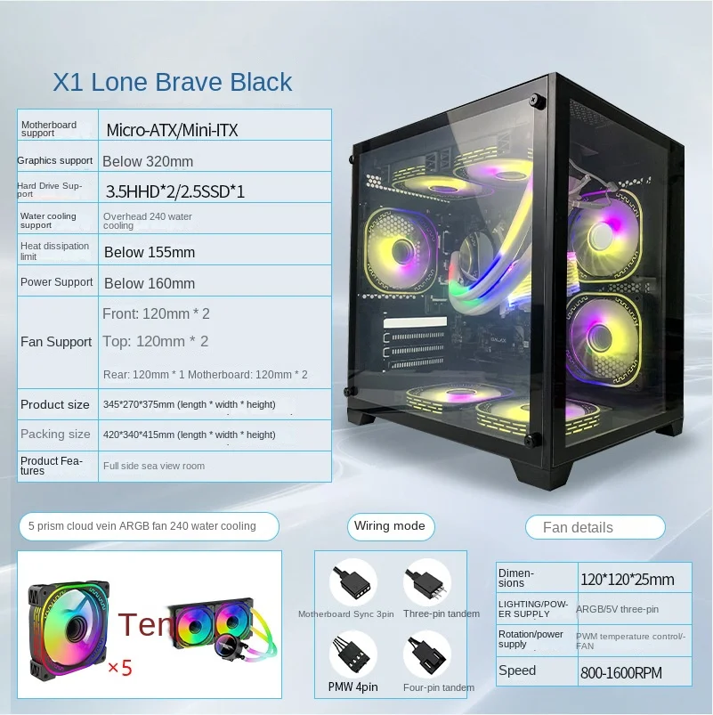 Be the first to review “Desktop computer Ocean View room console case Desktop mini panoramic side transparent e-sports water-cooled game case”