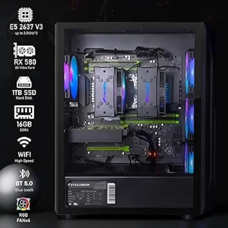 Dual CPU Gaming PC, Dual Intel i7 Xeon E5 up to 3.7GHz 1T SSD, 600M WiFi, BT 5.0, RGB Fan x4, Windows 10 Pro