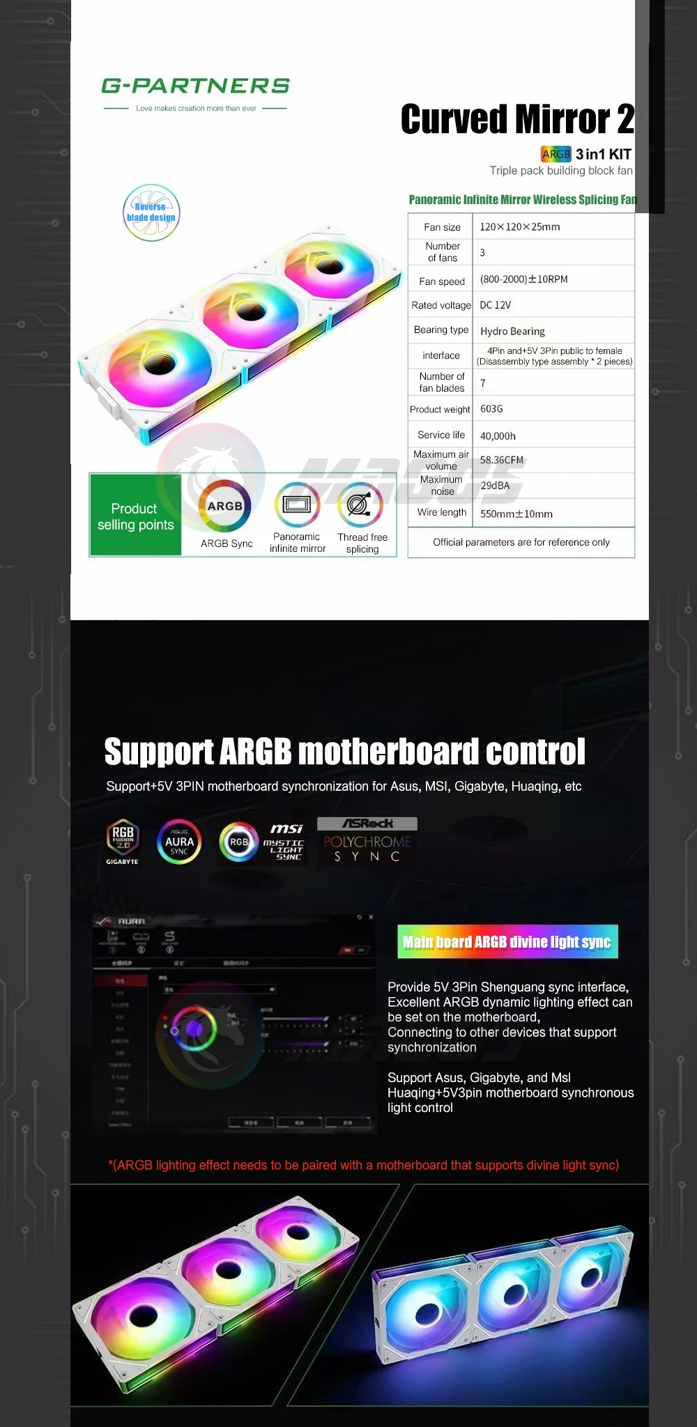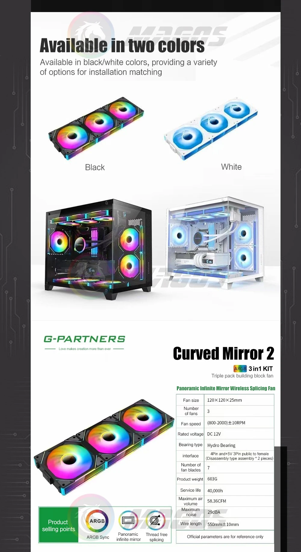 Infinity Mirror Uni Fan 3 in 1 Kit, ARGB Light Effect Forword Reverse Blade, PC Gamer Cabinet Water Cooling Silent Mute Radiator