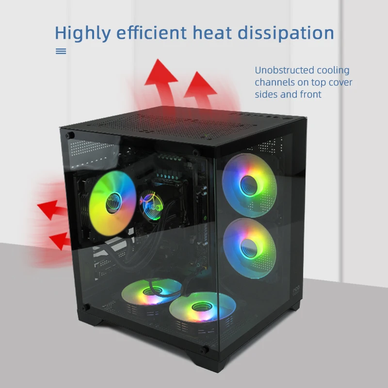 MANMU PC Case Sea View Room Gaming Computer Desktop M-ATX Motherboard 240 Double-Sided Tempered Glass PC Gamer Cabinet
