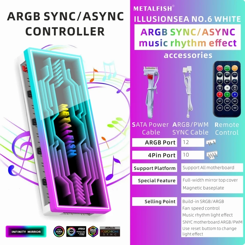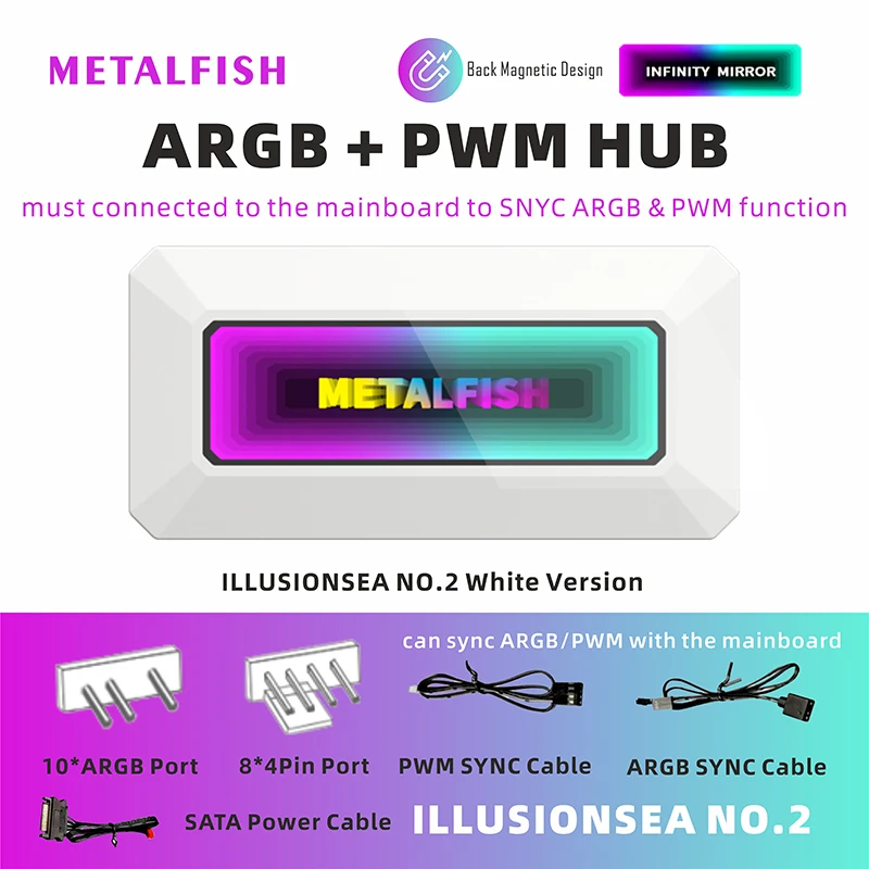 METALFISH ARGB Fan HUB Splitter With 4Pin PWM For Computer Cooling SYNC CPU Radiator 5V 3Pin LED Light Strip Remote Controller