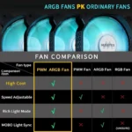 Mid Tower Gaming PC Case, 6 PWM ARGB Fans Pre-Installed, Opening Tempered Glass Door, USB 3.0 x 2, Computer Case