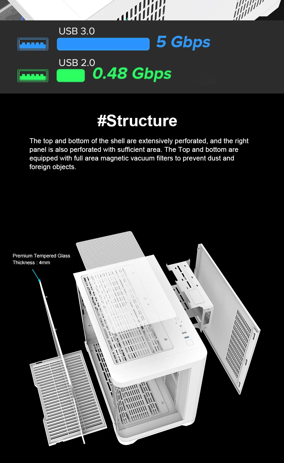 Left side panel: Full tempered glass