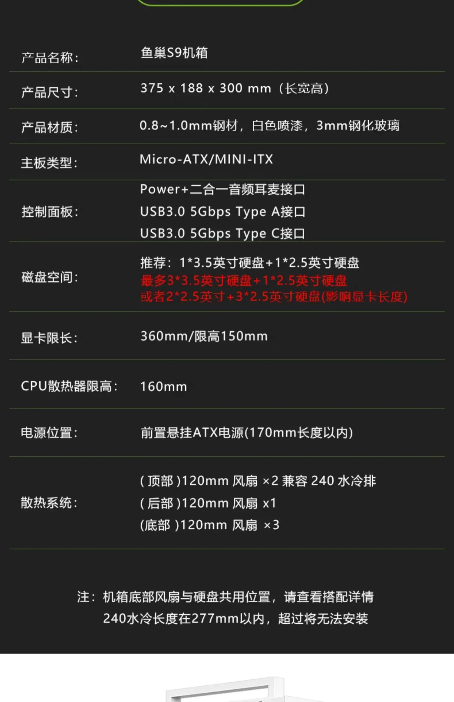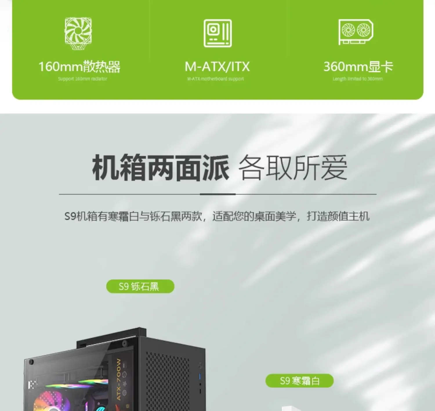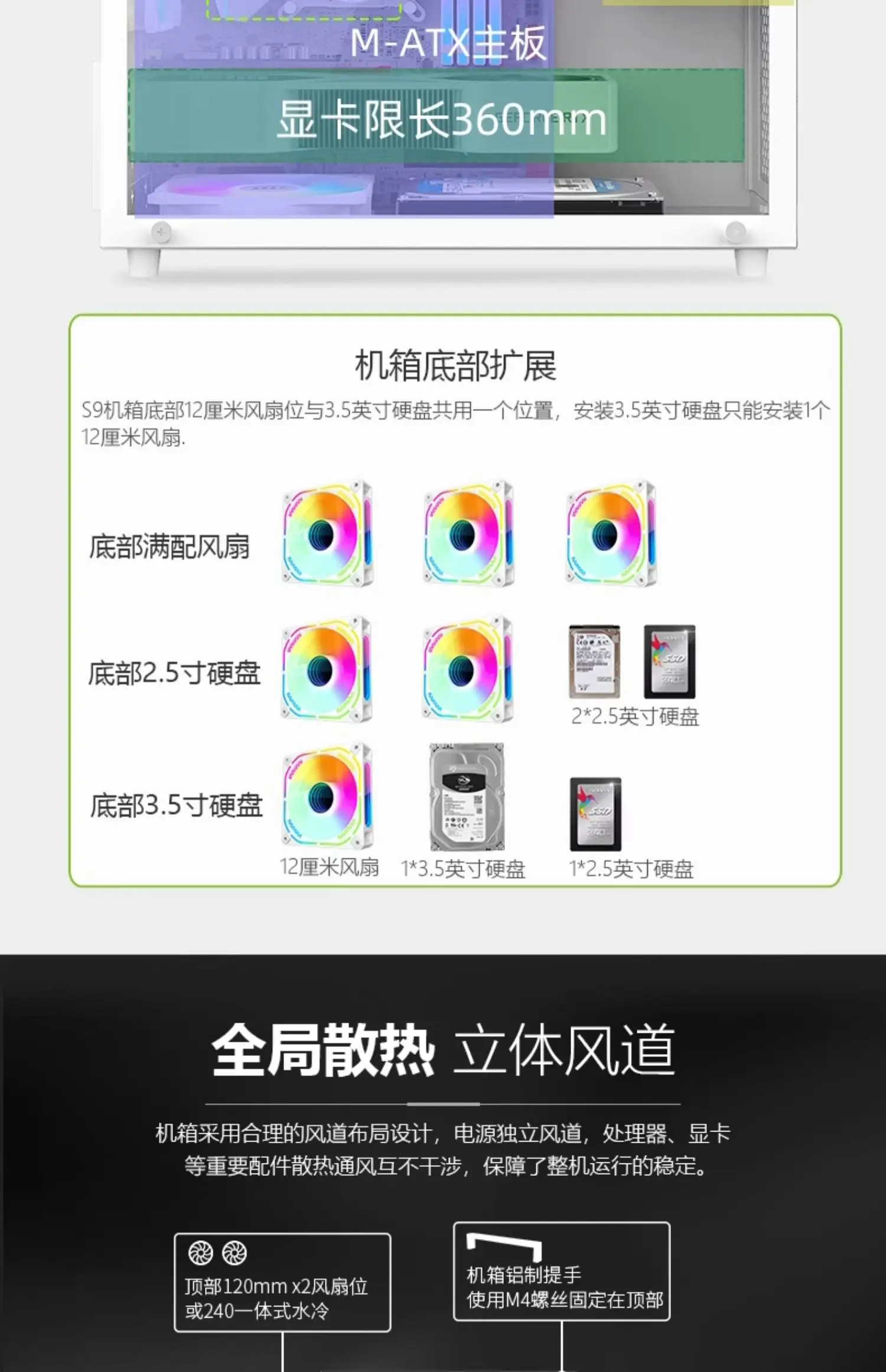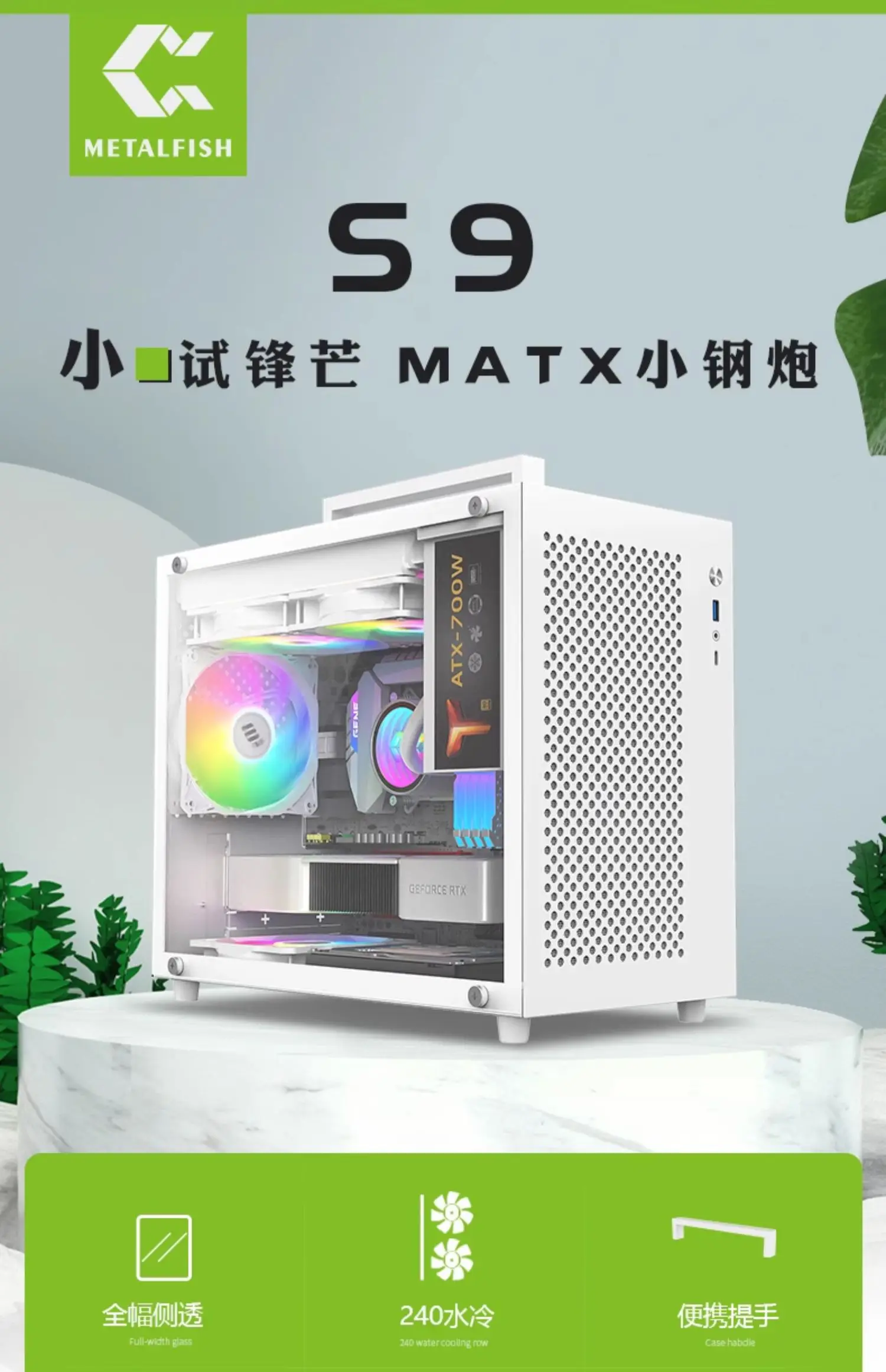 S9 chassis, M-ATX desktop computer empty main chassis, white 240 water-cooled side transparent handheld mini desktop
