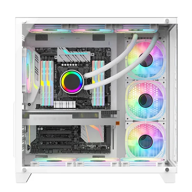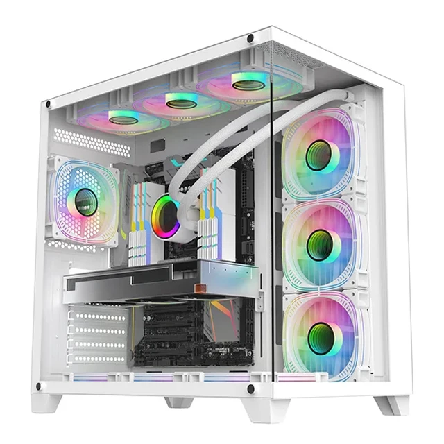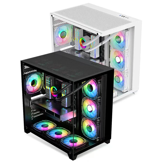 SATE Hot Selling Top Brand Gaming Pc Case Tempered Glass Panel Full View Desktop Computer Case RGB Fan ATX Case PC Cabinet