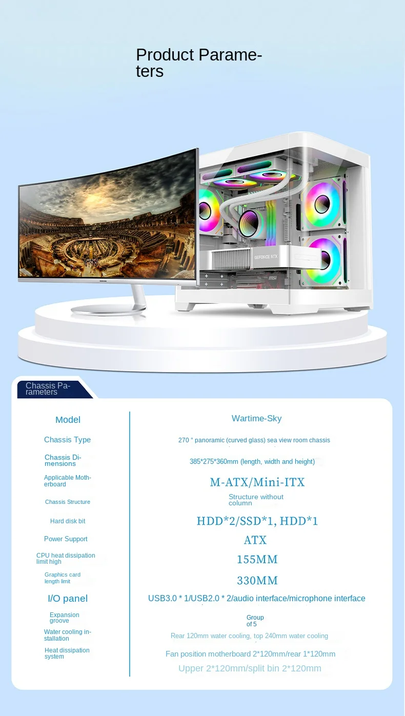 Sea View Room Computer case fully transparent curved glass MATX mini games esports home console case