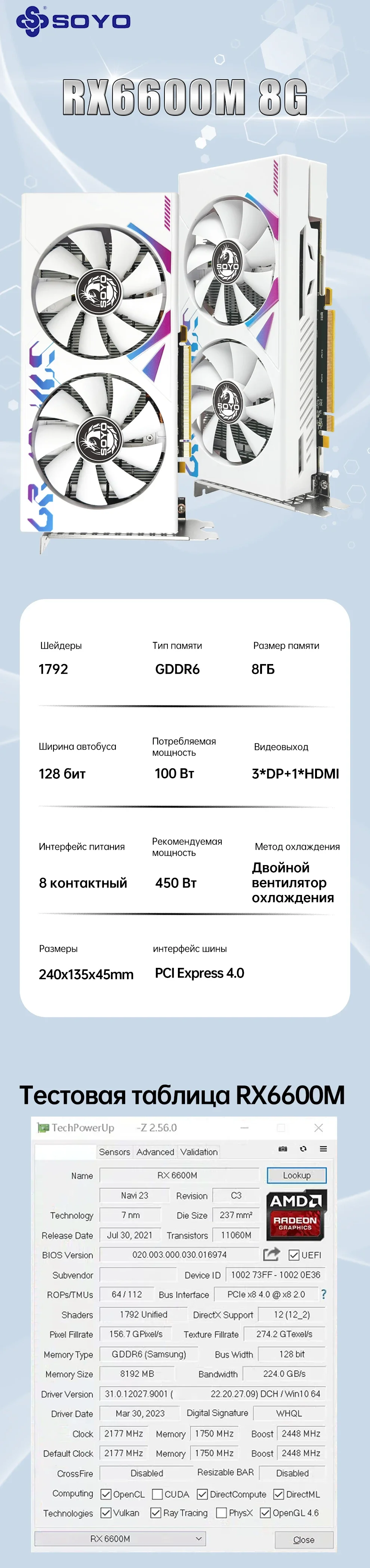 ???????????? ?????????? SOYO RX6600M 8G GDDR6, HDMI-???????????, DP PCIE 4.0, ???????? ??? ?????????? ??????? ???????????