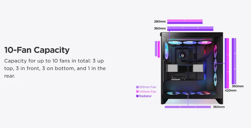 motherboard supporting: E-ATX (Up to 277mm), ATX, Micro-ATX, Mini-ITX